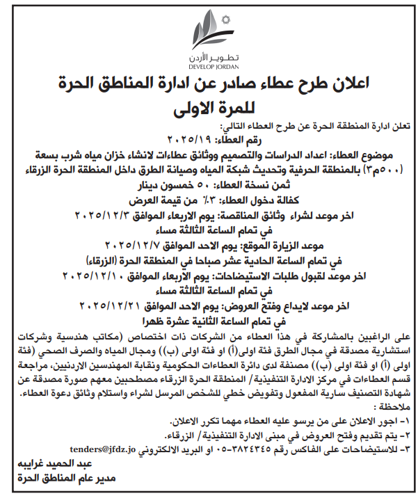 • إبحث في أكبر وأشمل قاعدة بيانات على مستوى الأردن, تحتوي على جميع العطاءات والمناقصات الحكومية، الدولية، الخاصة، والعسكرية مصنفة ومبوبة منذ عام 2013 حتى تاريخ اليوم!