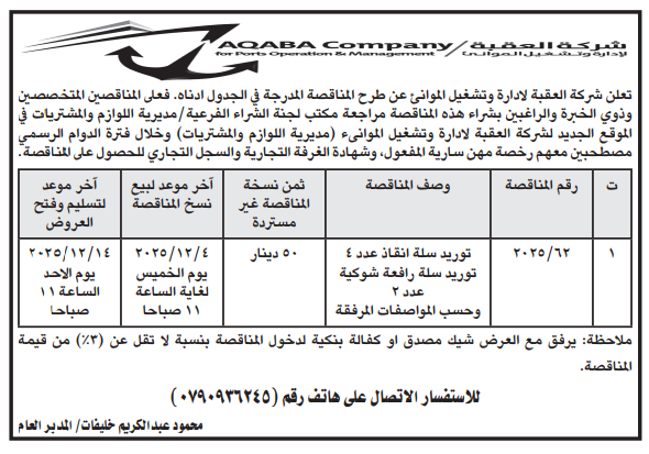 توريد سلة انقاذ عدد 4 ورافعة شوكية عدد 2