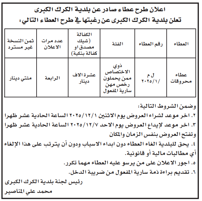 • إبحث في أكبر وأشمل قاعدة بيانات على مستوى الأردن, تحتوي على جميع العطاءات والمناقصات الحكومية، الدولية، الخاصة، والعسكرية مصنفة ومبوبة منذ عام 2013 حتى تاريخ اليوم!