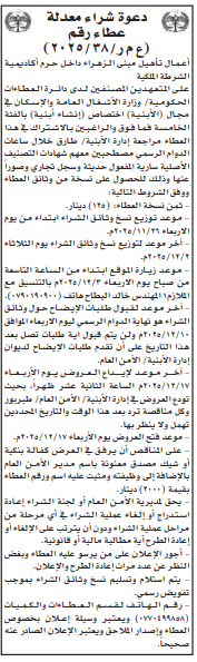عطاءات تغلق اليوم
