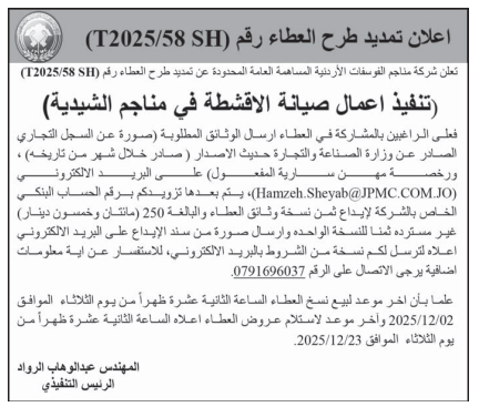 احدث العطاءات ذات صلة