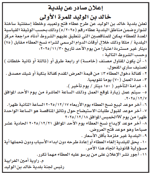 • إبحث في أكبر وأشمل قاعدة بيانات على مستوى الأردن, تحتوي على جميع العطاءات والمناقصات الحكومية، الدولية، الخاصة، والعسكرية مصنفة ومبوبة منذ عام 2013 حتى تاريخ اليوم!