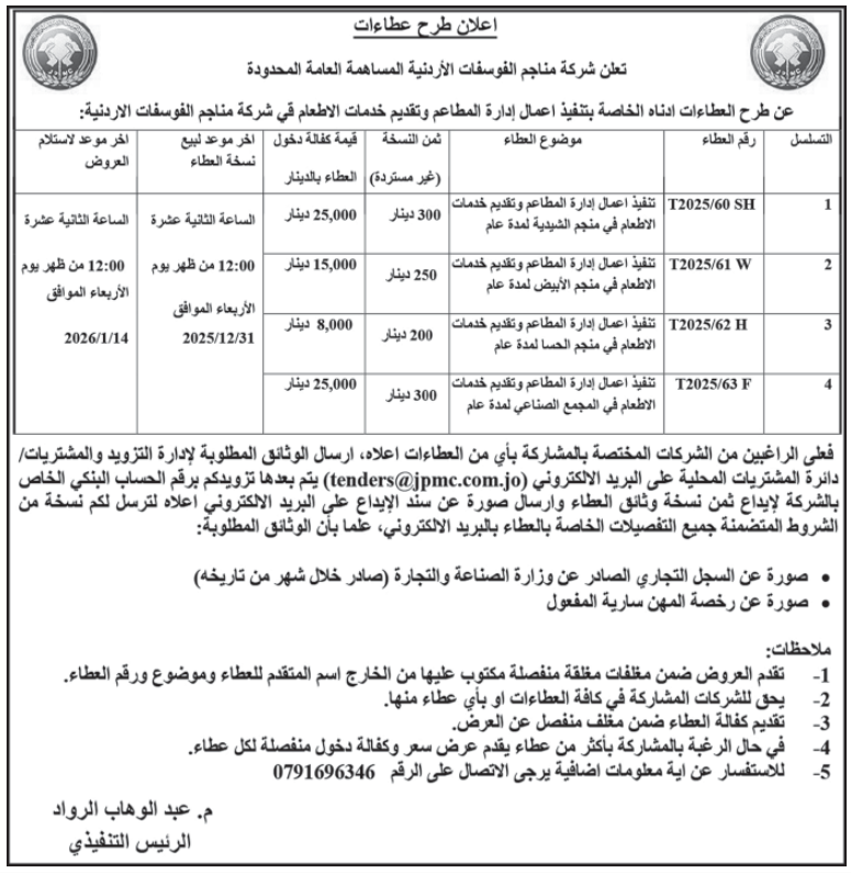• إبحث في أكبر وأشمل قاعدة بيانات على مستوى الأردن, تحتوي على جميع العطاءات والمناقصات الحكومية، الدولية، الخاصة، والعسكرية مصنفة ومبوبة منذ عام 2013 حتى تاريخ اليوم!