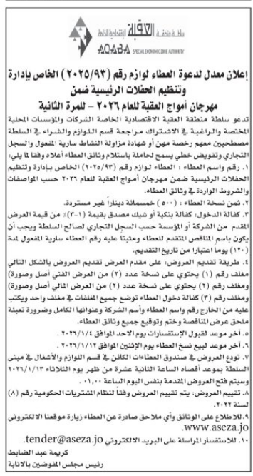 • إبحث في أكبر وأشمل قاعدة بيانات على مستوى الأردن, تحتوي على جميع العطاءات والمناقصات الحكومية، الدولية، الخاصة، والعسكرية مصنفة ومبوبة منذ عام 2013 حتى تاريخ اليوم!