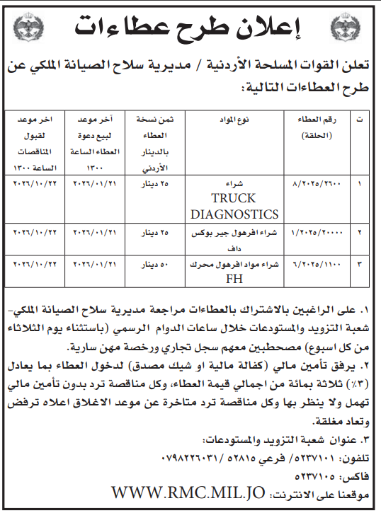 • إبحث في أكبر وأشمل قاعدة بيانات على مستوى الأردن, تحتوي على جميع العطاءات والمناقصات الحكومية، الدولية، الخاصة، والعسكرية مصنفة ومبوبة منذ عام 2013 حتى تاريخ اليوم!