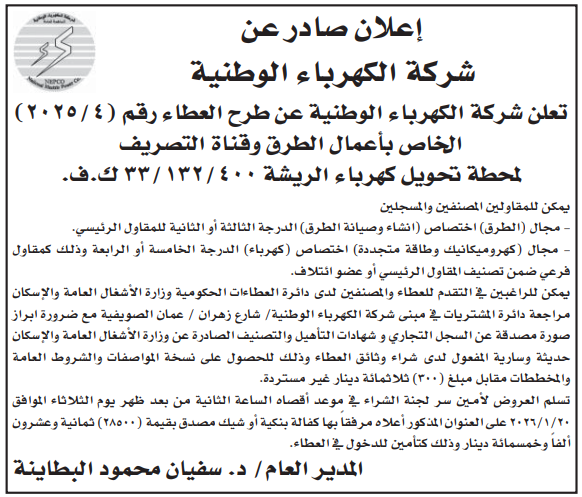 الرئيسية / تفاصيل ومرفقات العطاء