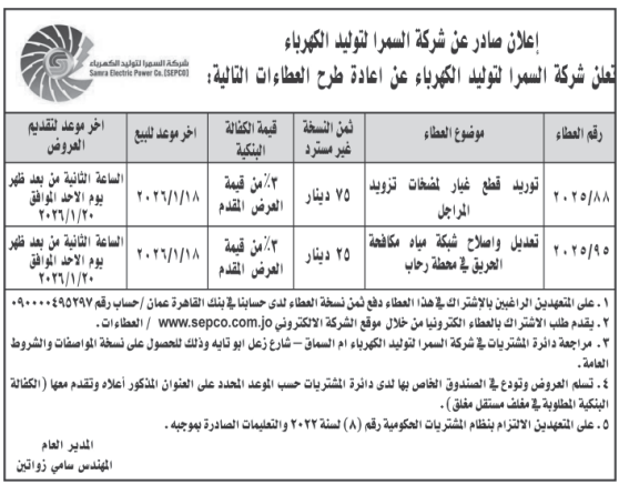 عطاءات تغلق اليوم