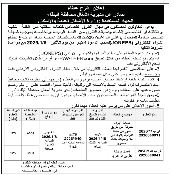 مديرية اشغال البلقاء