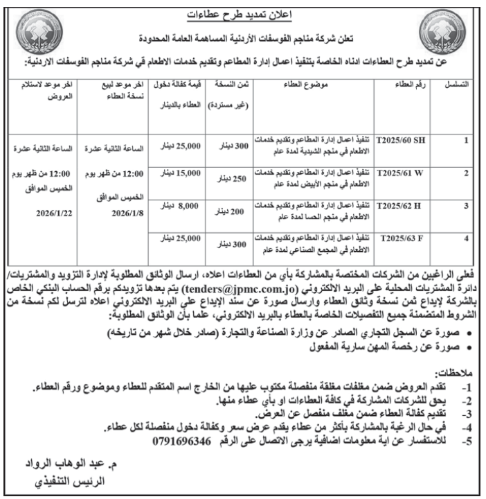 • إبحث في أكبر وأشمل قاعدة بيانات على مستوى الأردن, تحتوي على جميع العطاءات والمناقصات الحكومية، الدولية، الخاصة، والعسكرية مصنفة ومبوبة منذ عام 2013 حتى تاريخ اليوم!
