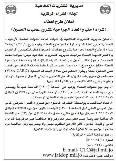 شراء احتياج العدد الجراحية لمشروع عمليات الحسين
