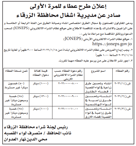 • إبحث في أكبر وأشمل قاعدة بيانات على مستوى الأردن, تحتوي على جميع العطاءات والمناقصات الحكومية، الدولية، الخاصة، والعسكرية مصنفة ومبوبة منذ عام 2013 حتى تاريخ اليوم!