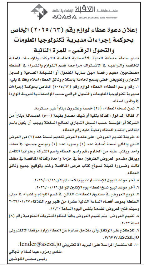 • إبحث في أكبر وأشمل قاعدة بيانات على مستوى الأردن, تحتوي على جميع العطاءات والمناقصات الحكومية، الدولية، الخاصة، والعسكرية مصنفة ومبوبة منذ عام 2013 حتى تاريخ اليوم!