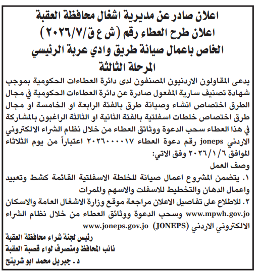 • إبحث في أكبر وأشمل قاعدة بيانات على مستوى الأردن, تحتوي على جميع العطاءات والمناقصات الحكومية، الدولية، الخاصة، والعسكرية مصنفة ومبوبة منذ عام 2013 حتى تاريخ اليوم!