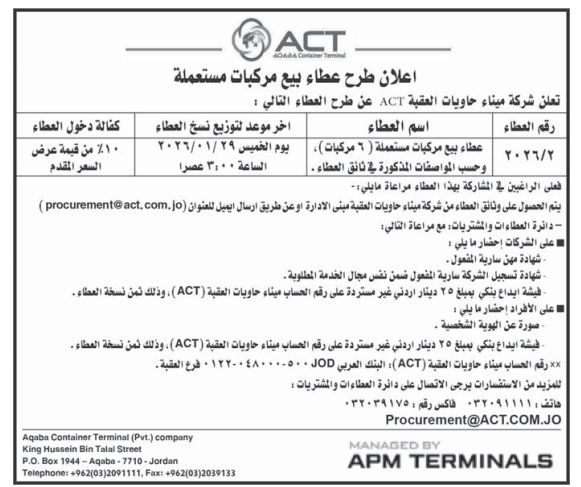 • إبحث في أكبر وأشمل قاعدة بيانات على مستوى الأردن, تحتوي على جميع العطاءات والمناقصات الحكومية، الدولية، الخاصة، والعسكرية مصنفة ومبوبة منذ عام 2013 حتى تاريخ اليوم!