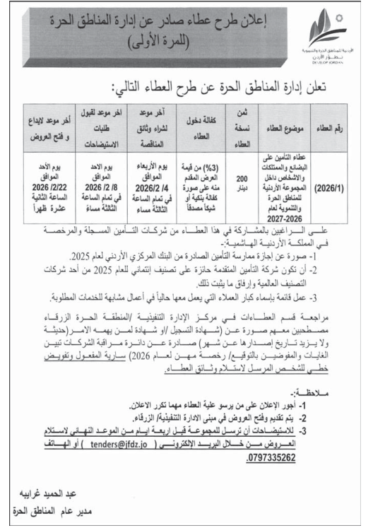 التامين على البضائع والممتلكات والاشخاص داخل المجموعة الاردنية الحرة