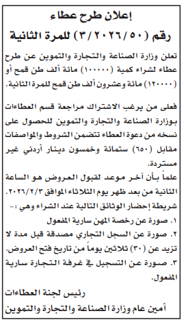 شراء كمية (100000) مائة الف طن قمح او (120000) مائة وعشرون الف طن قمح
