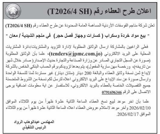 • إبحث في أكبر وأشمل قاعدة بيانات على مستوى الأردن, تحتوي على جميع العطاءات والمناقصات الحكومية، الدولية، الخاصة، والعسكرية مصنفة ومبوبة منذ عام 2013 حتى تاريخ اليوم!